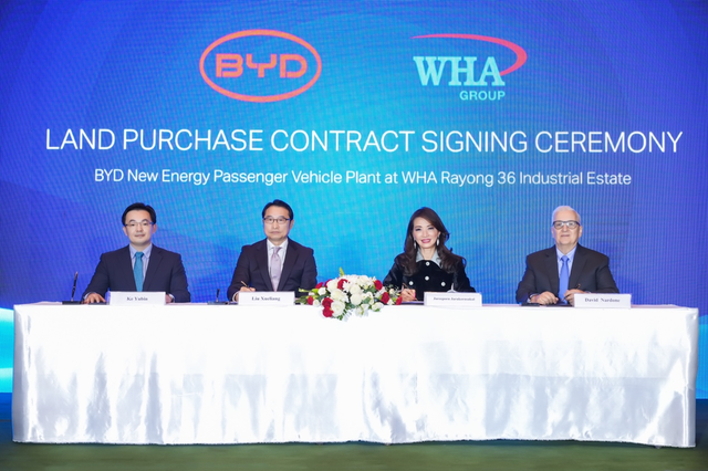 继进军挪威、日本等市场后,比亚迪的企业全球化进程,再次开启崭新篇章。9月8日,比亚迪汽车泰国有限公司(以下简称比亚迪)与WHA伟华集团大众有限公司签约,正式签署土地认购、建厂相关协议,这标志着比亚迪全资投建的首个海外乘用车工厂正式在泰国落地。